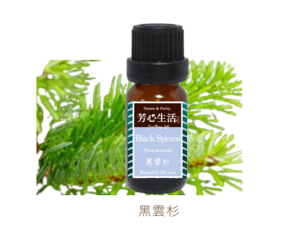而黑雲杉精油是透過蒸汽蒸餾從葉子和樹枝中提取的,這些葉子和樹枝通常在一月至四月之間收穫,此時精油含量最高。暴露在陽光下的樹枝比茂密森林中遮蔭的樹枝產出更多的油。精油具有新鮮的香脂和微甜的針葉香氣,並帶有果香和樹脂的底味。它聞起來與冷杉或松樹相似,但比其他常綠油更順滑、更甜、更溫和。許多人認為雲杉油是冬季或聖誕節的油,但其新鮮森林香味和廣泛的功效並不僅止於冬季適用。