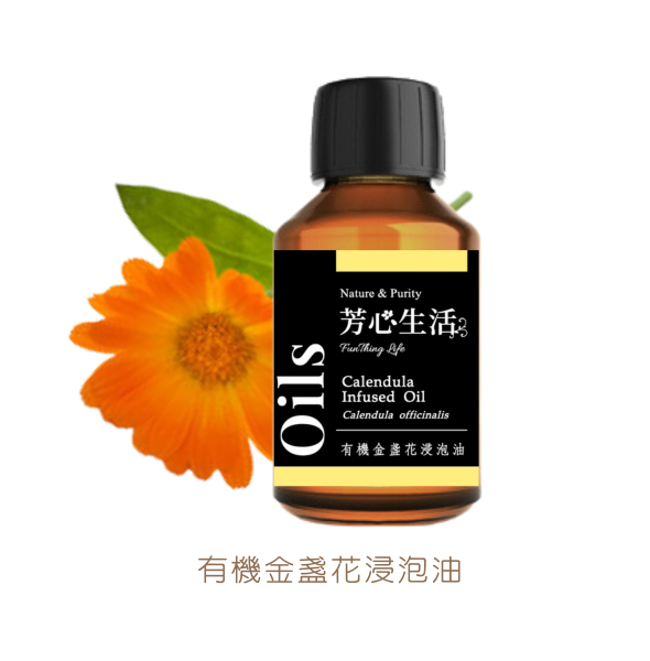 金盏花是菊科一年生草本植物,大多是亮黃色、黃色、橘色、黃橘色花朵,並在春夏季節間開花,呈橘黃色的花瓣含有金盞花素、皂素、胡蘿蔔素、黃酮類等。取花瓣製作而成的浸泡油,可以直接添加精油、混合其他清爽基底油做成保養油,也很適合混合蜜蠟做成油霜或護唇膏。
